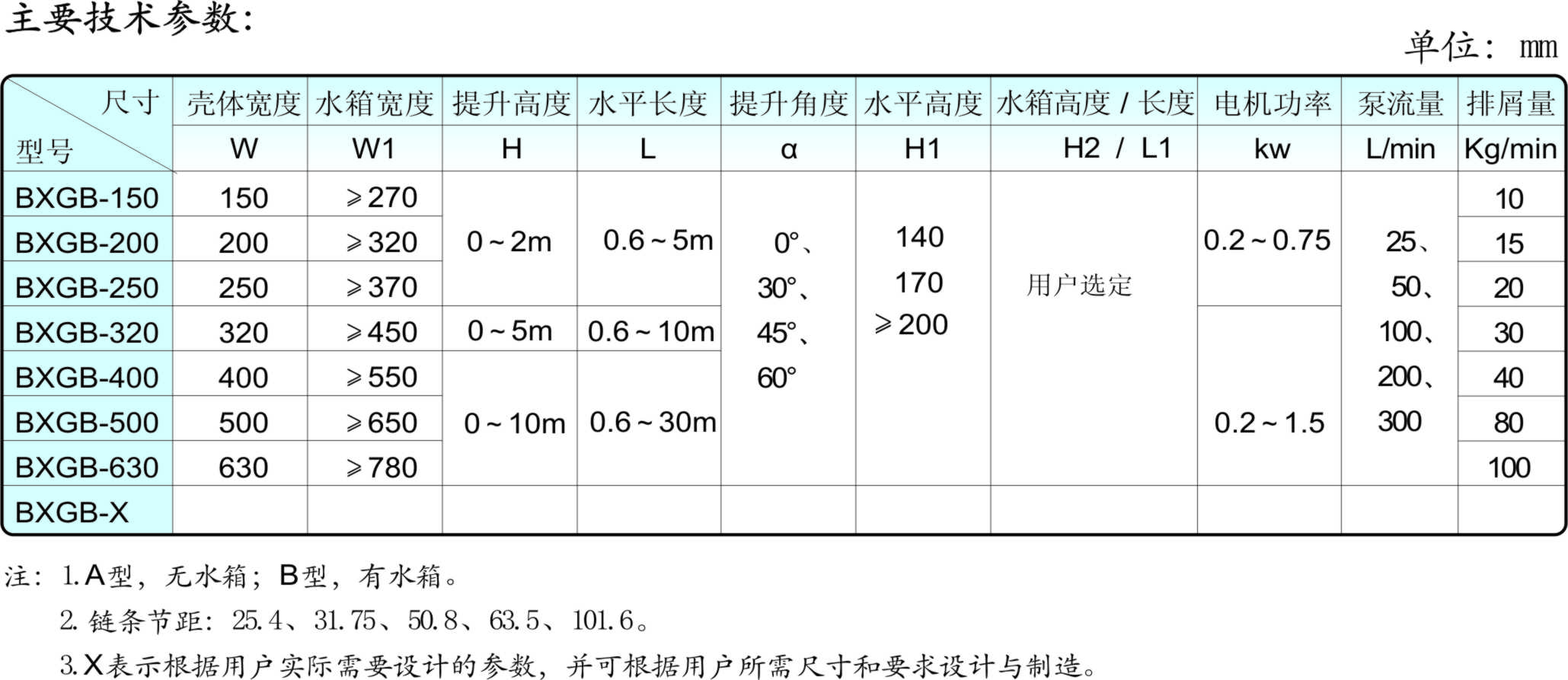 BXGB系列刮板排屑裝置由殼體、減速機(jī)、驅(qū)動(dòng)鏈條、傳動(dòng)鏈條及刮板等部分組成。該裝置是利用特制的滾輪鏈條傳動(dòng),用刮屑板將切屑沿排屑器底部刮送到指定位置。該裝置可提供充足的選用范圍,刮屑板的高度、分布間距可隨機(jī)設(shè)計(jì);通過(guò)輸送速度、有效輸送寬度的變化組合,可以調(diào)整控制機(jī)器的實(shí)際輸送量。